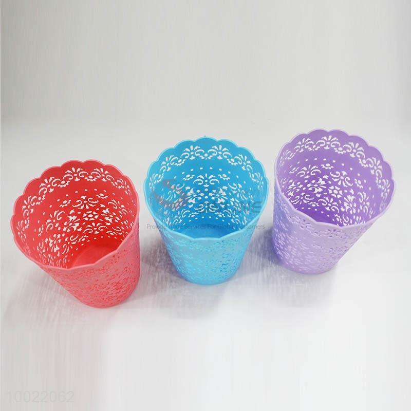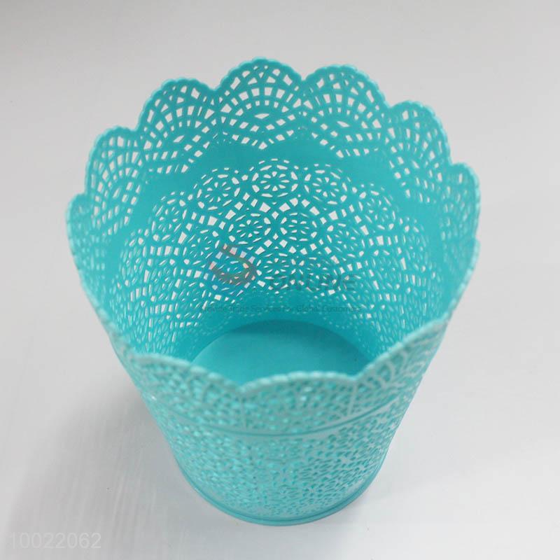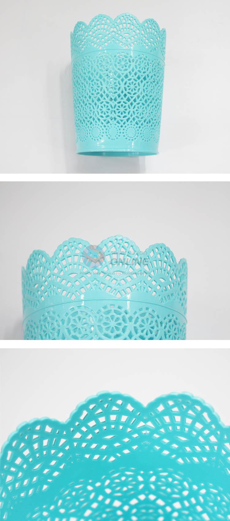 Blue plastic trash can with wave edge