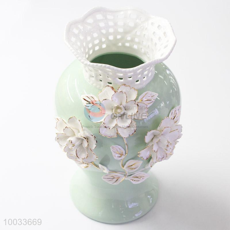 30*19cm Beautiful Hollow Bottleneck Handmade Ceramic Crafts Vase with Three-dimensional Flowers Pattern