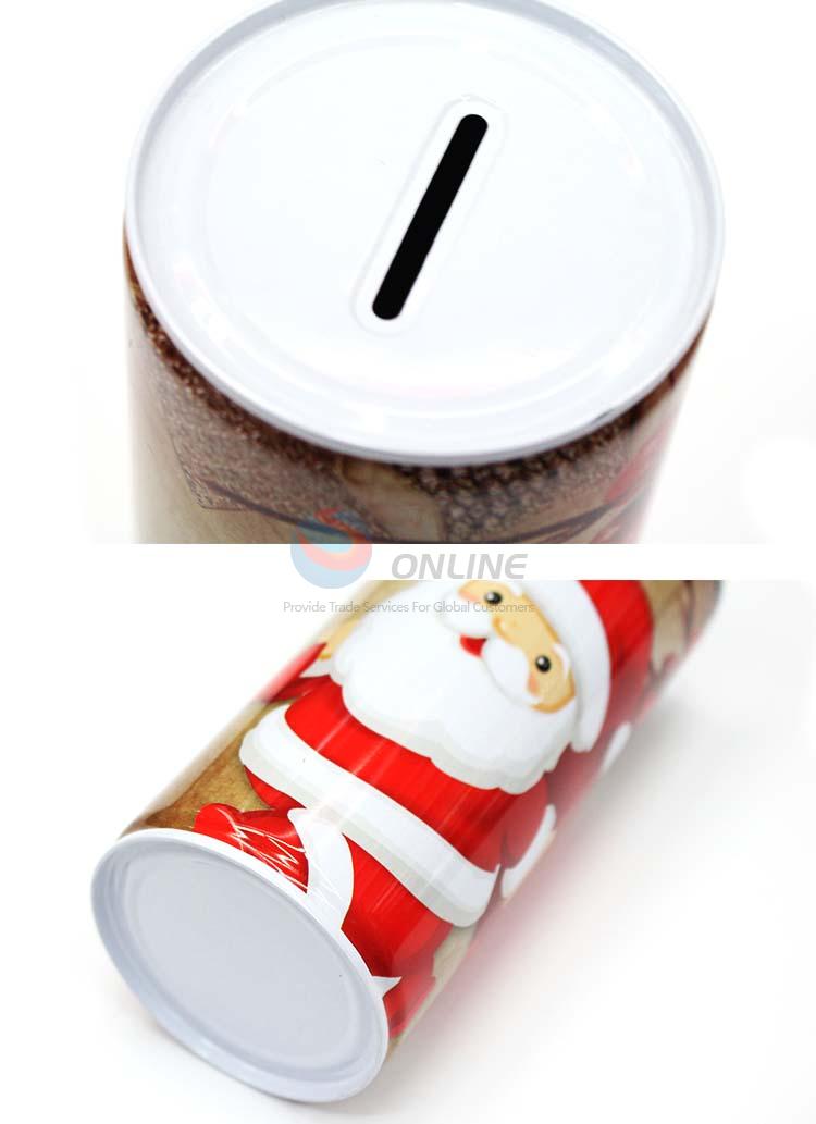 6.5*15CM Cute zip-top can shape tinplate money box printed santa claus pattern