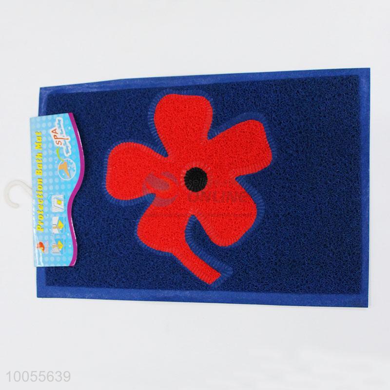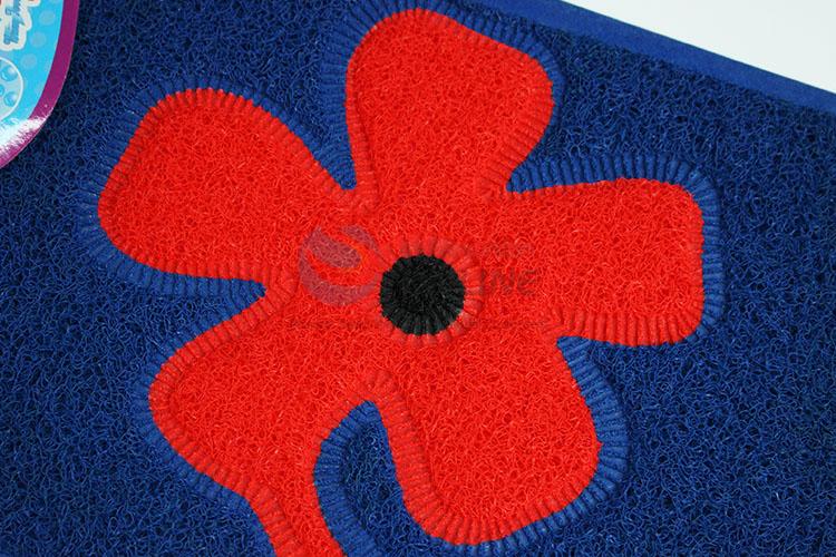 Hot sale rectangular deep blue drawing door mat with red flower embossing