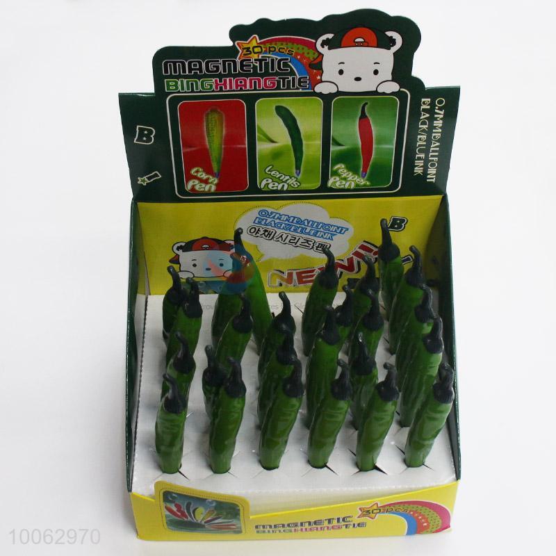 Hot Sale 13*2.4cm Green Capsicum Shaped Ball-point Pen with Magnetic Sticker