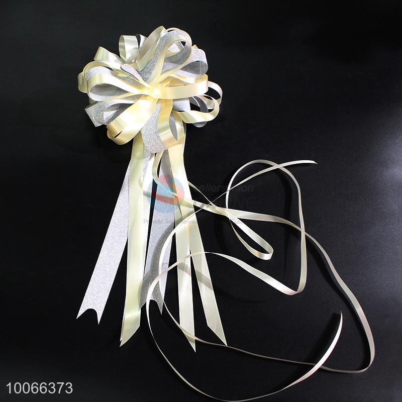 Delicate white ribbon/pull bow for wedding flower packing