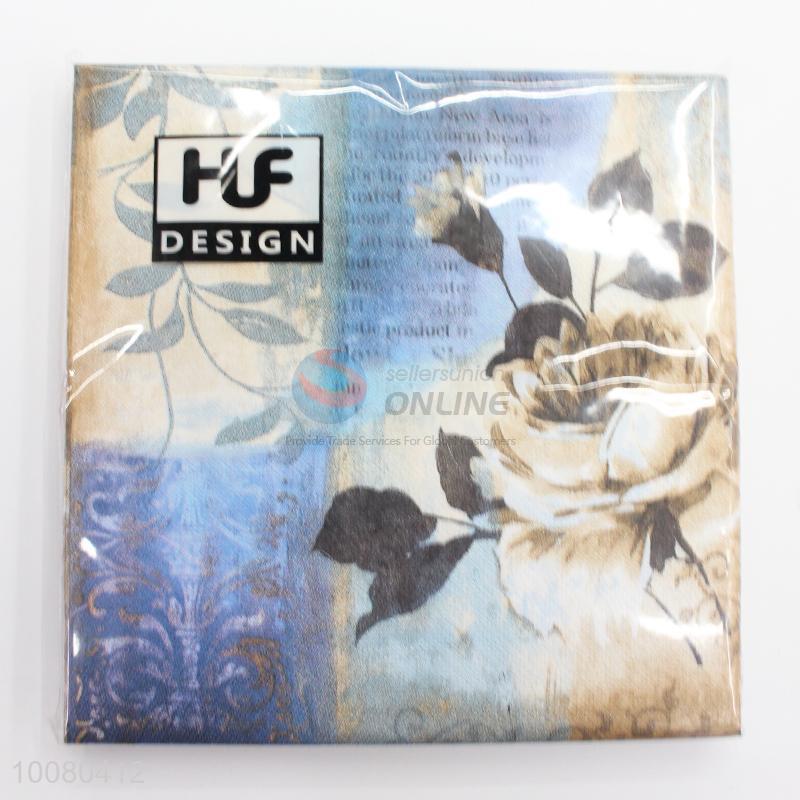 20pcs Light Blue Rose Printed Paper Napkins Set