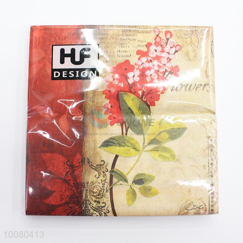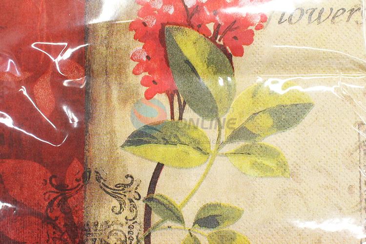 20pcs Red Flower Printed Paper Napkins Set