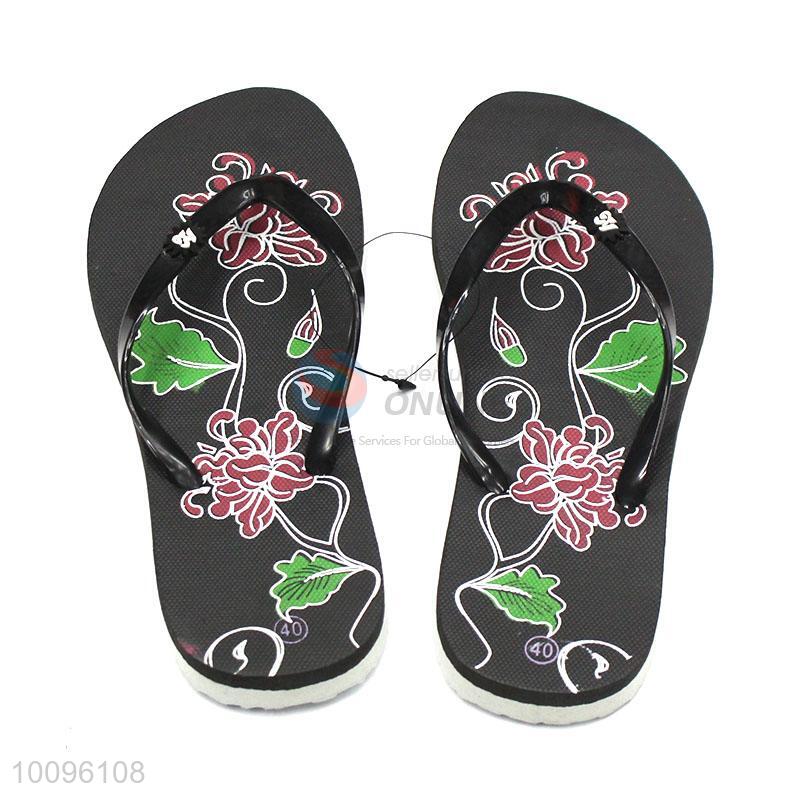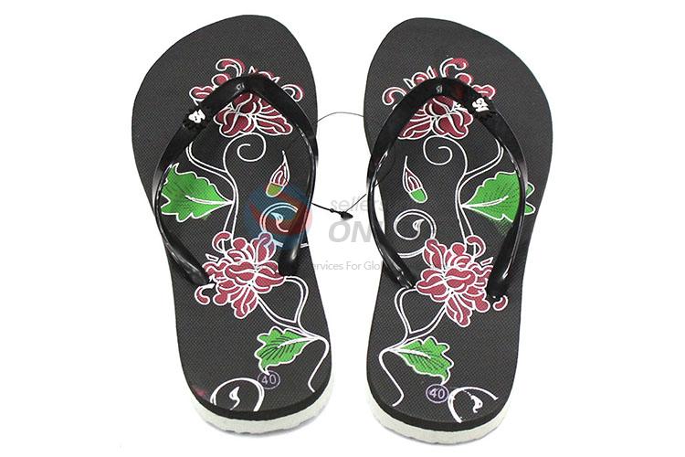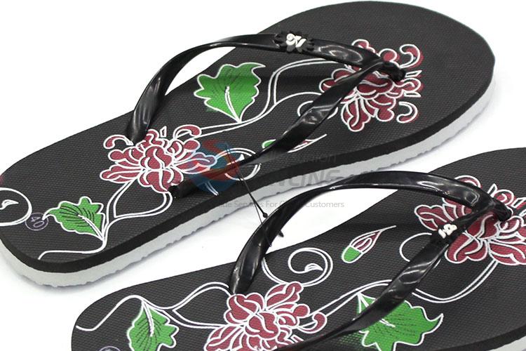 Factory direct black printing slipper lady flat flip flops