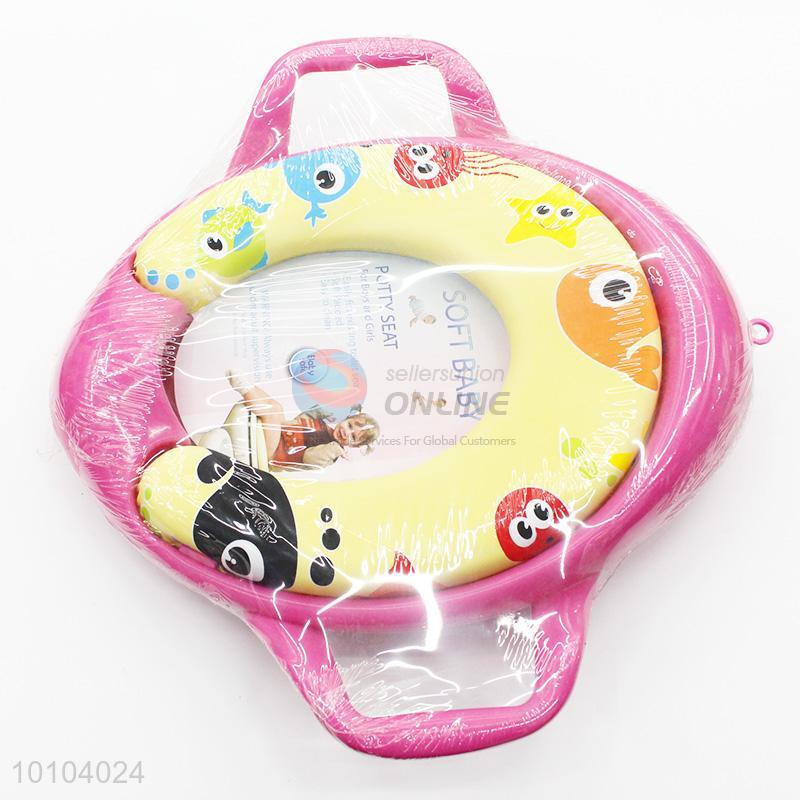 Pink Cartoon Pattern Soft Safe Toilet Training Seat with Handle