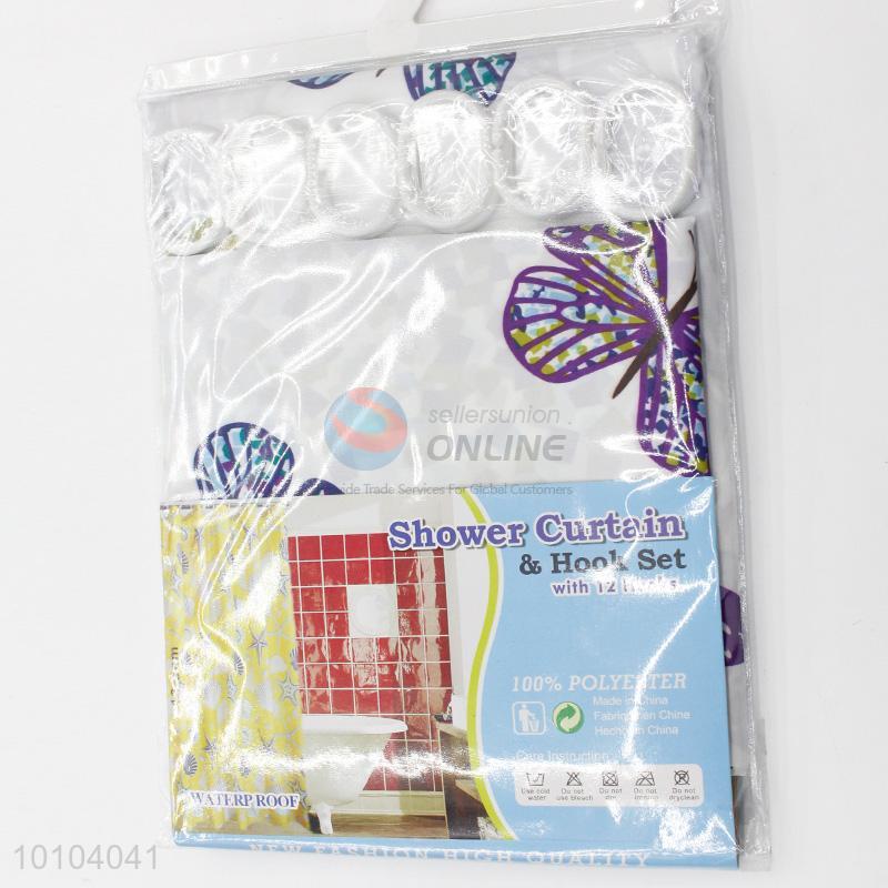 Butterfly Pattern WaterProof Bathroom Shower Curtains with Hooks