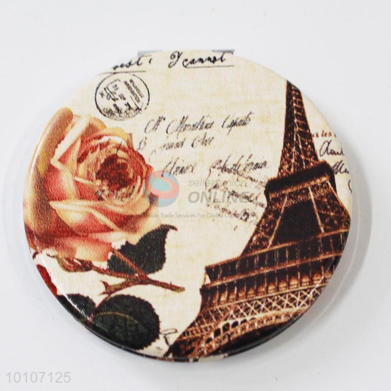 Vintage Tower and Rose Pattern Round Pocket Make-up Mirror