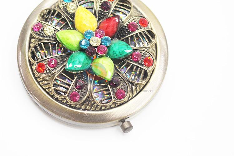 Exquisite Bronze with Colorful Rhinestone Pocket Cosmetic Mirror