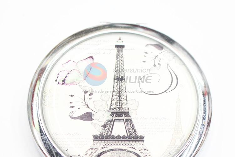 Tower and Butterfly Pattern Round Metal Pocket Makeup Mirror
