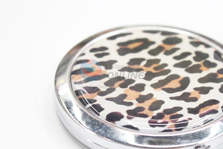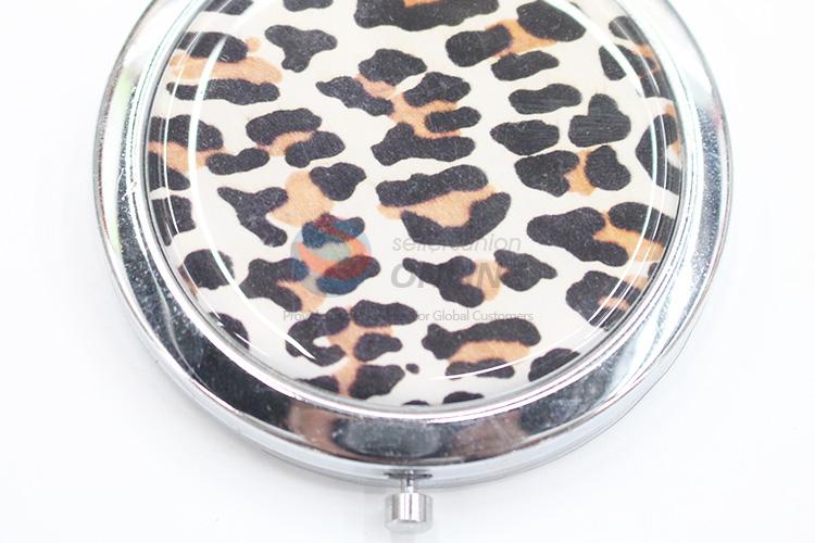 White Leopard Pattern Round Metal Pocket Makeup Mirror
