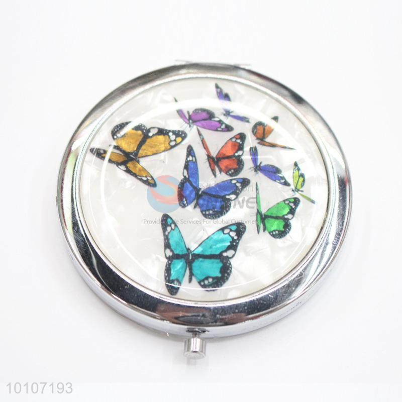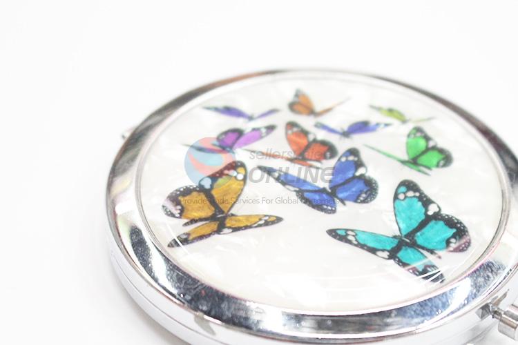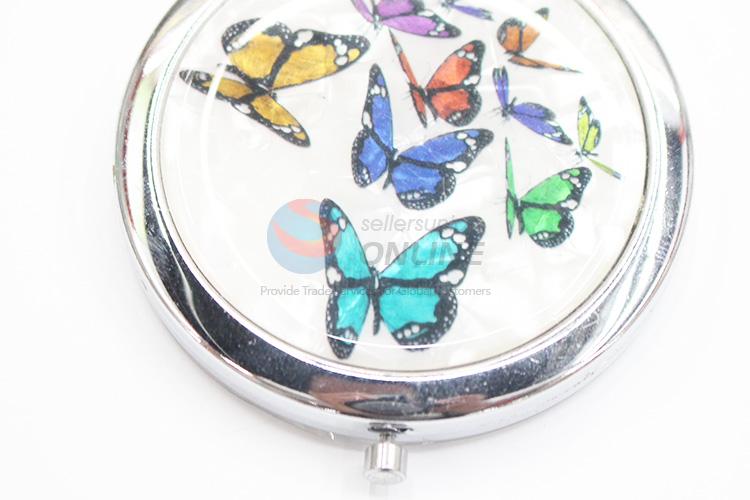 Butterfly Pattern Round Metal Pocket Makeup Mirror
