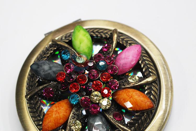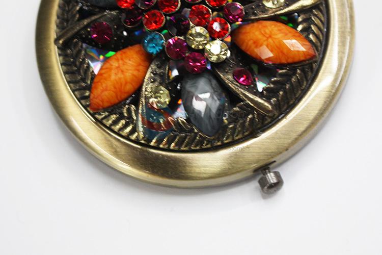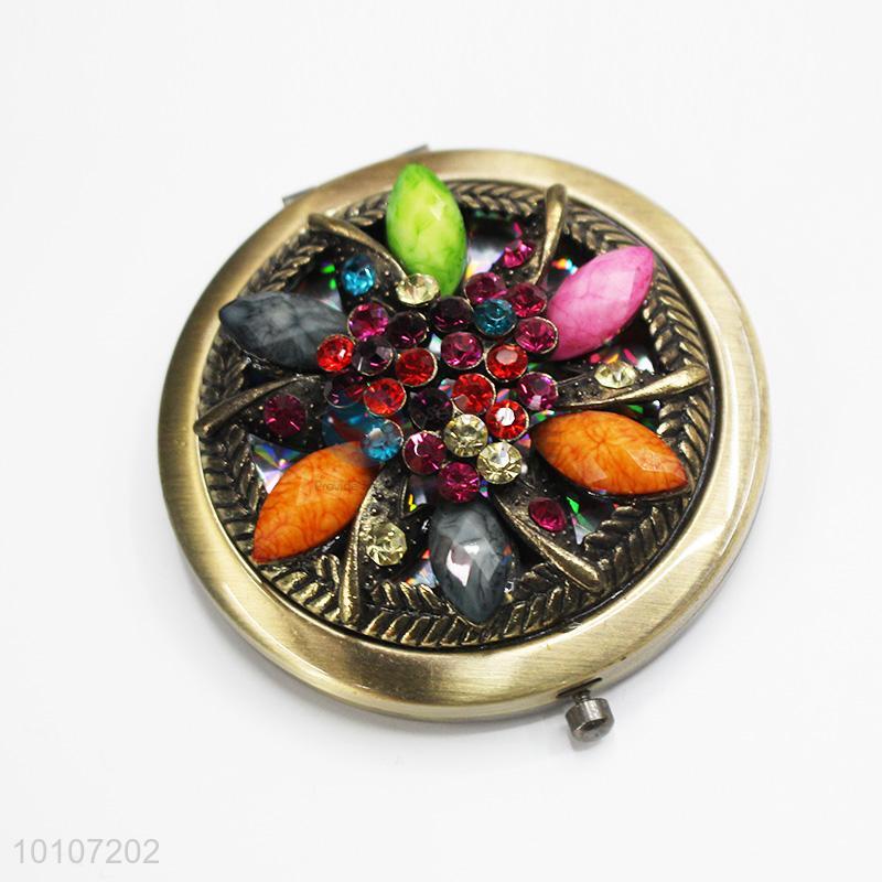 Flower Hollow Out Pattern Round Metal Pocket Makeup Mirror