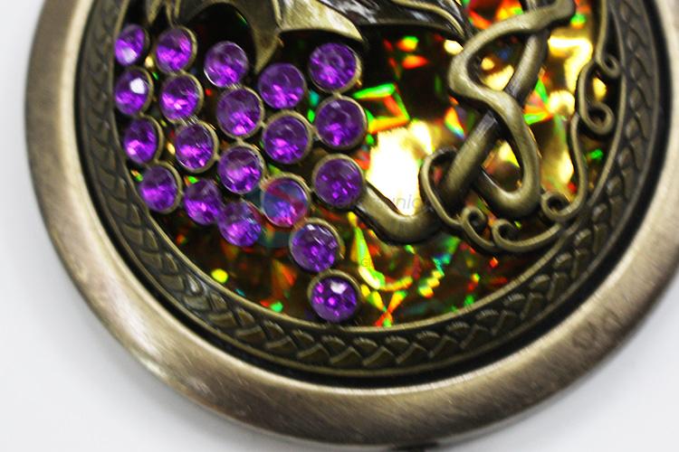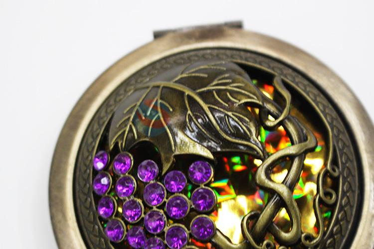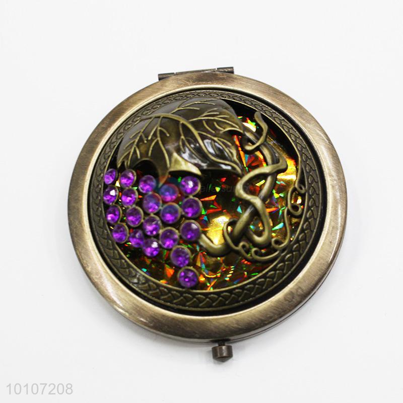 Bronze Grape Pattern Round Metal Pocket Makeup Mirror