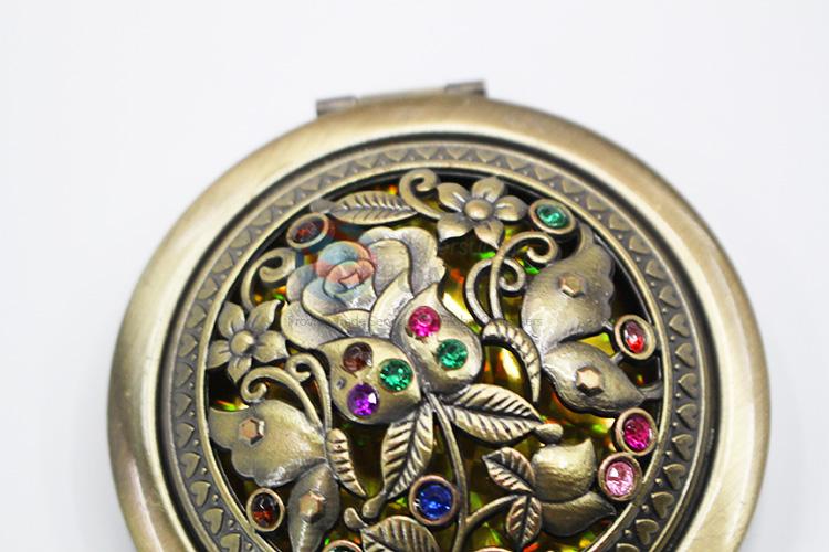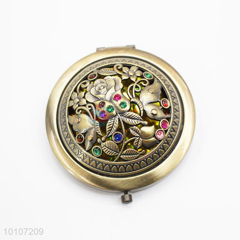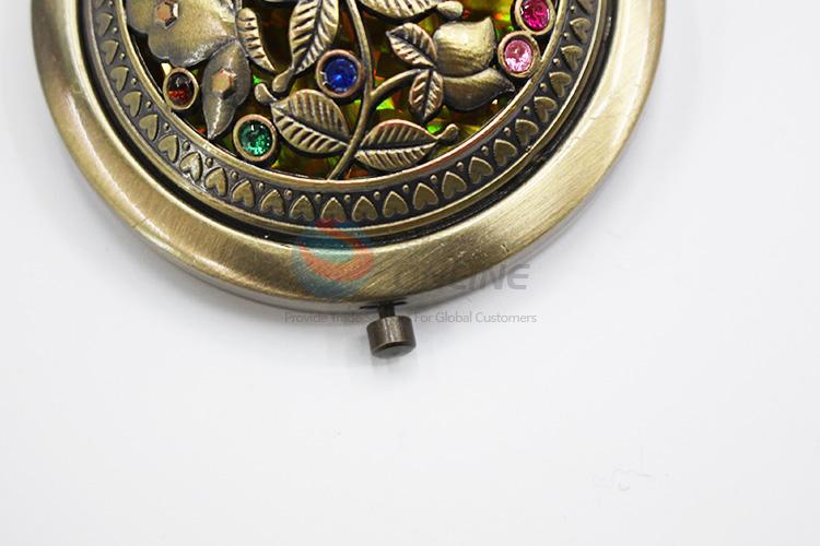 Bronze Rose Pattern Round Metal Pocket Makeup Mirror
