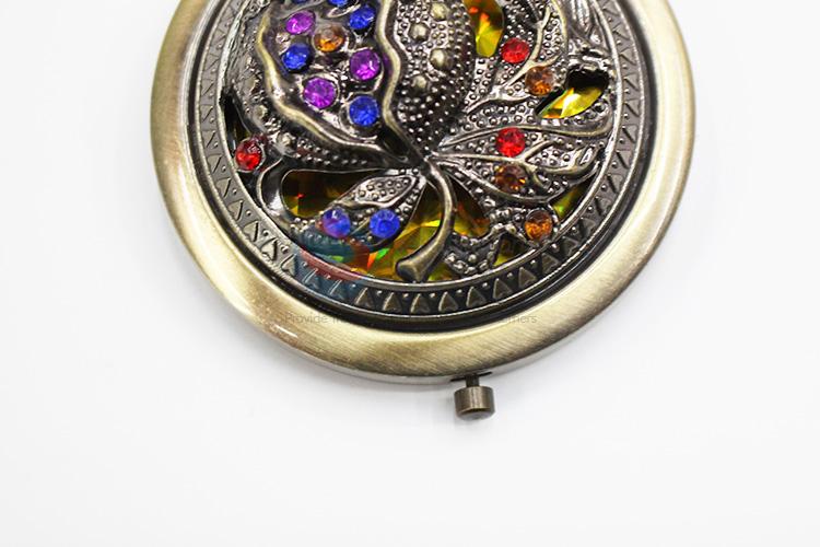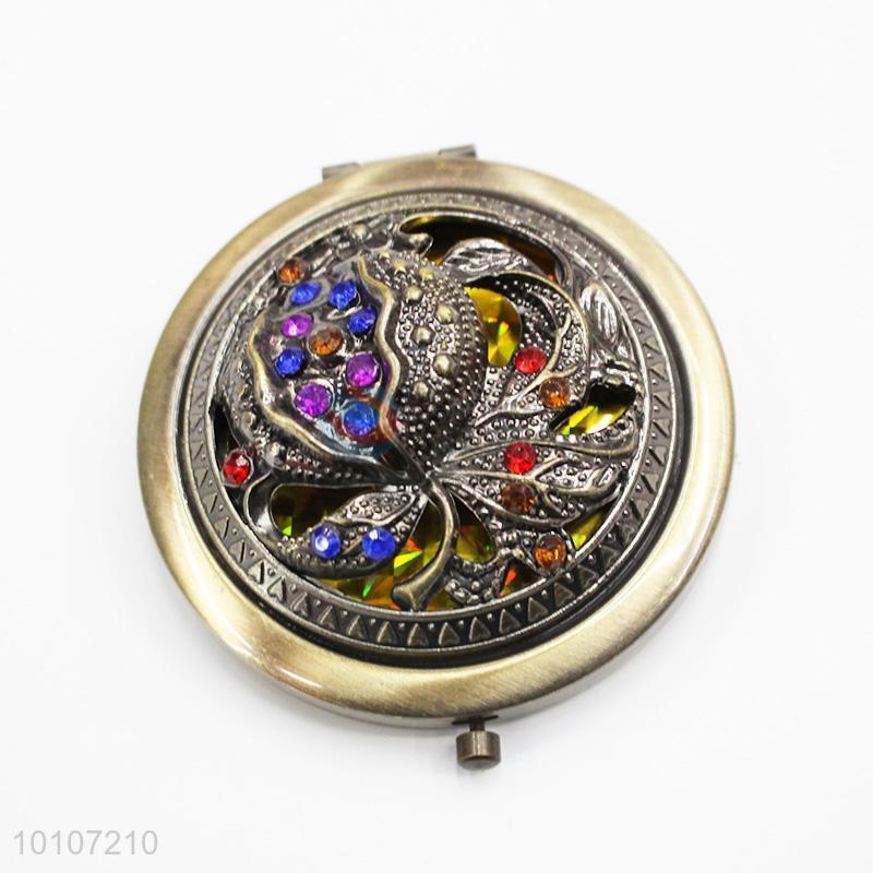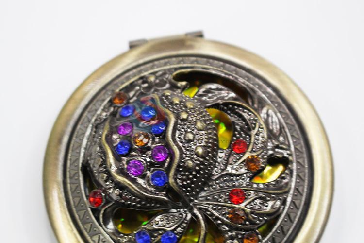 Exquisite Rose Pattern Round Metal Pocket Makeup Mirror