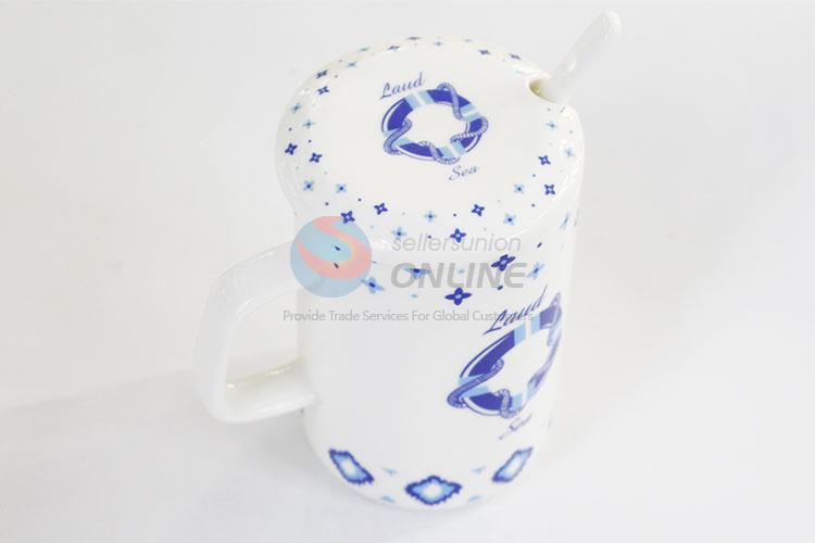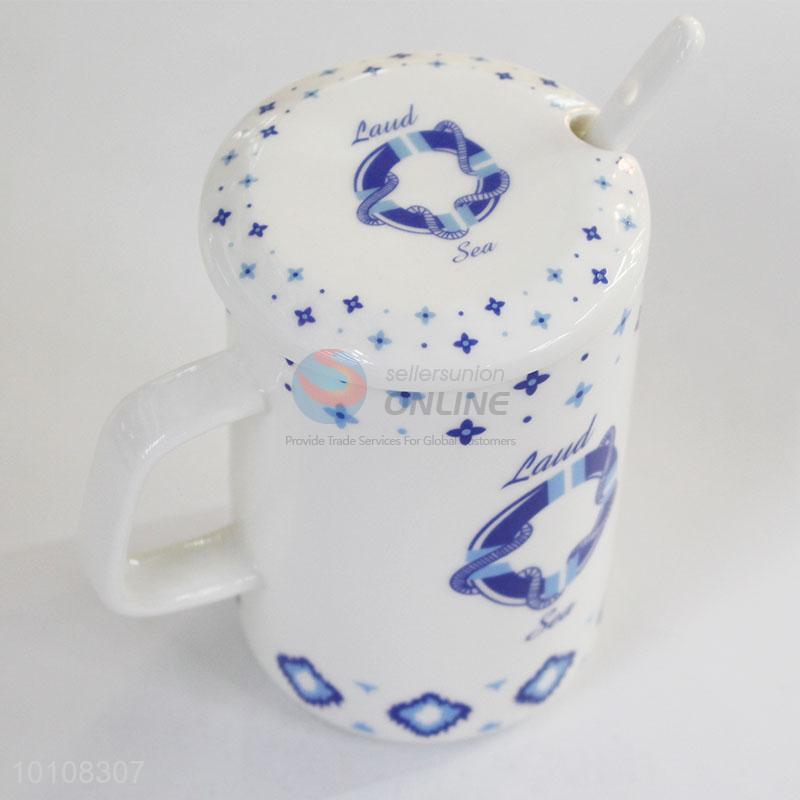 Creative printed ceramic coffee cup with spoon