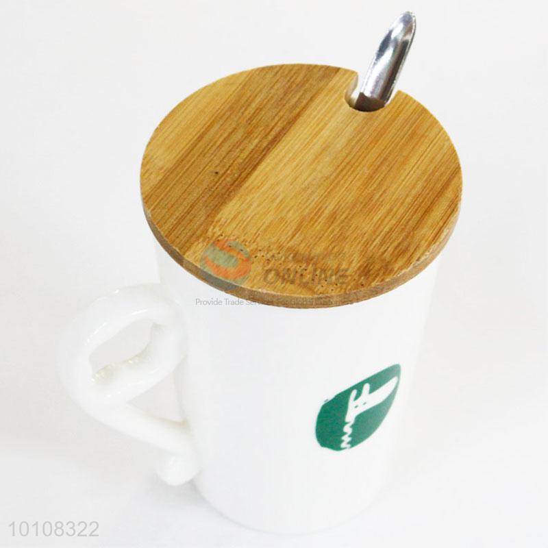 Promotional white coffee mugs ceramic cups with lid&spoon