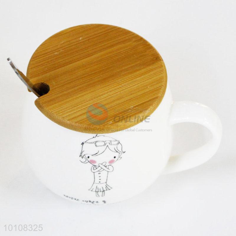 Top quality cute ceramic cup mug with lid and spoon