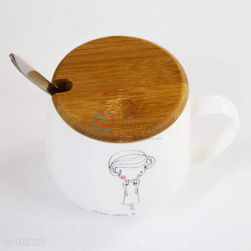 White Ceramic Coffee Mug With Spoon and Lid