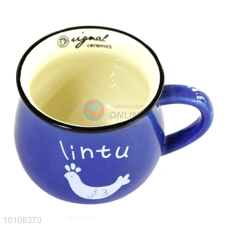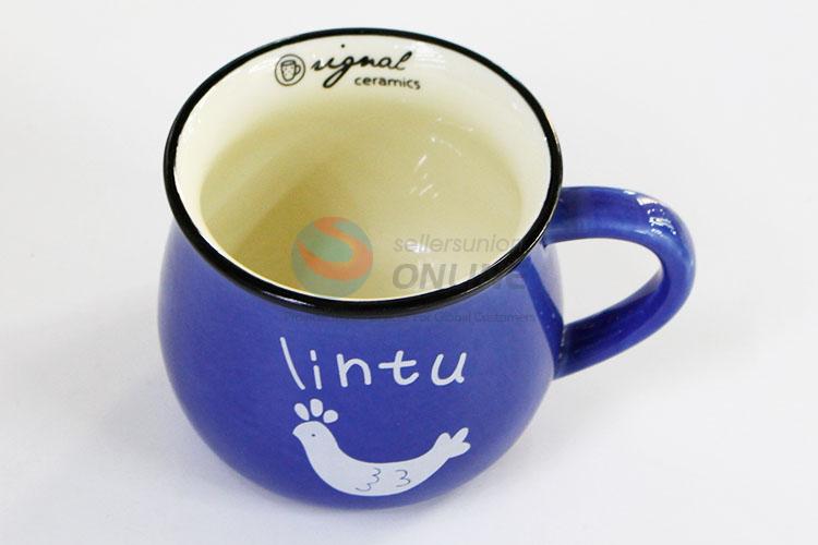 Cartoon style dark blue round milk tea cup