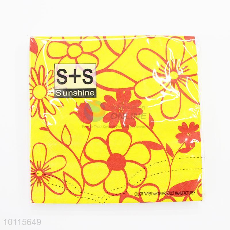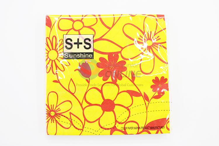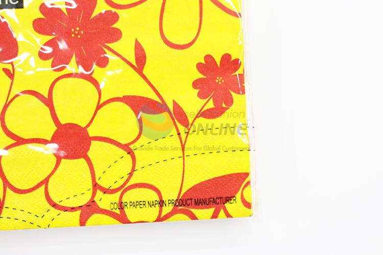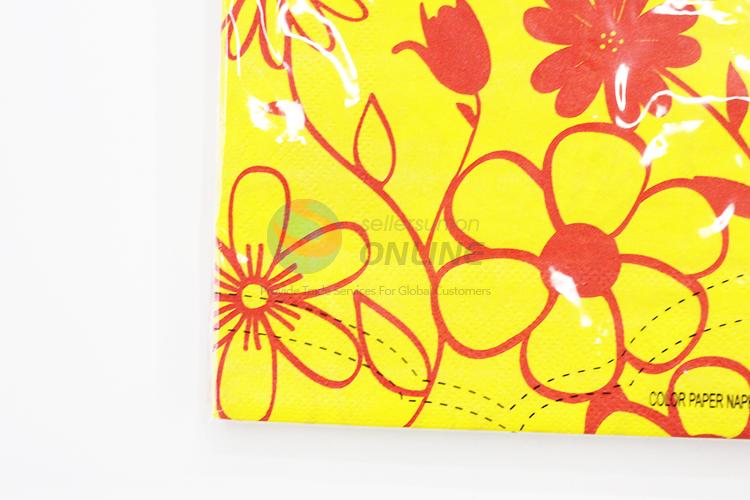 Wholesale cute yellow napkin with red flowers