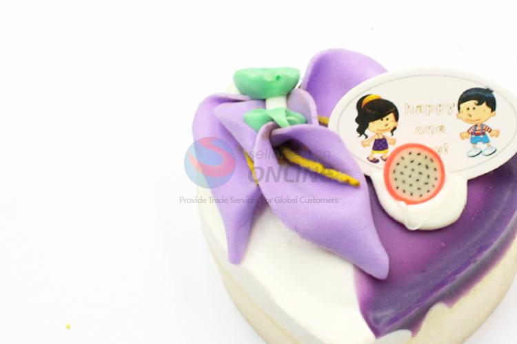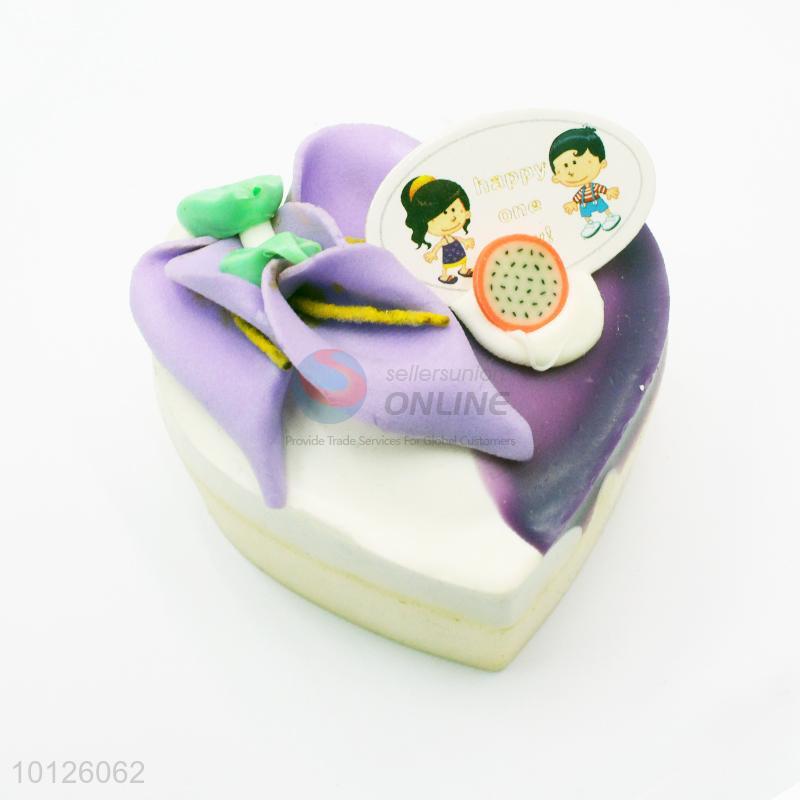 Purple heart shaped flower cake refrigerator magnet