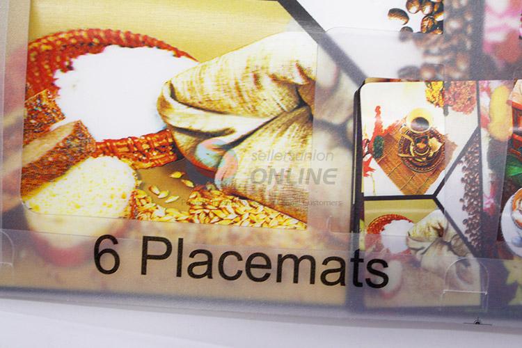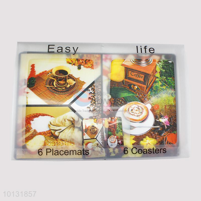 Promotional 6pcs Placmats, 6pcs Coasters with Coffee Pattern