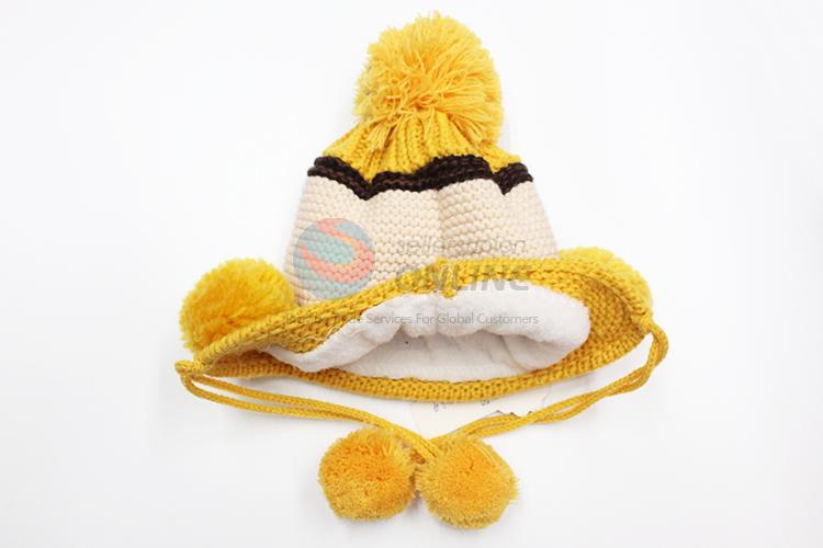Kids favorite yellow cotton knitting warm winter caps