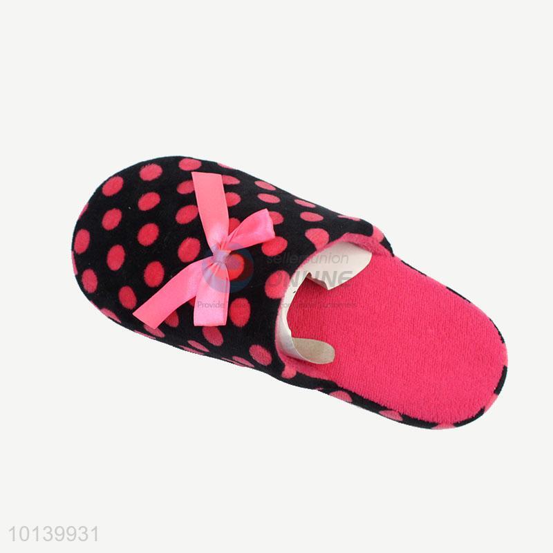 High sales black&red cotton slipper with cute pink bowknot