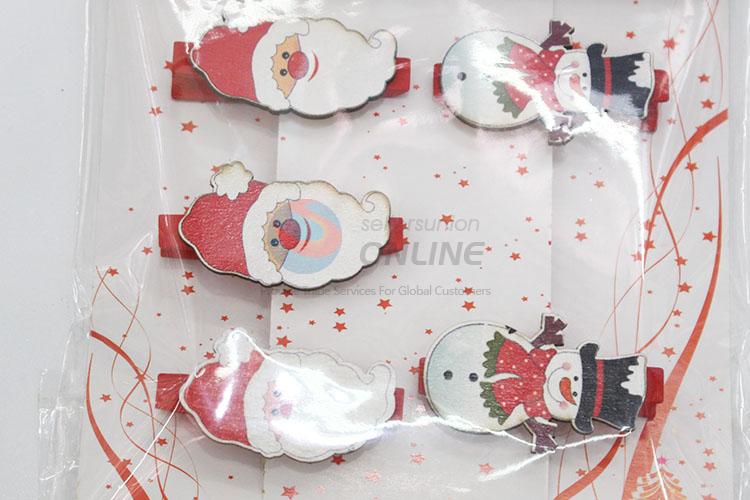 6 Pcs/Set Cute Cartoon Christmas Shaped Wooden Clip Photo Paper Craft Wooden Clips