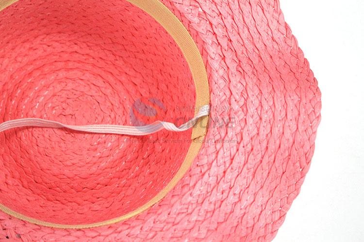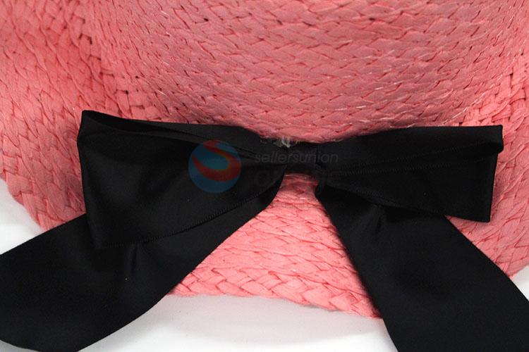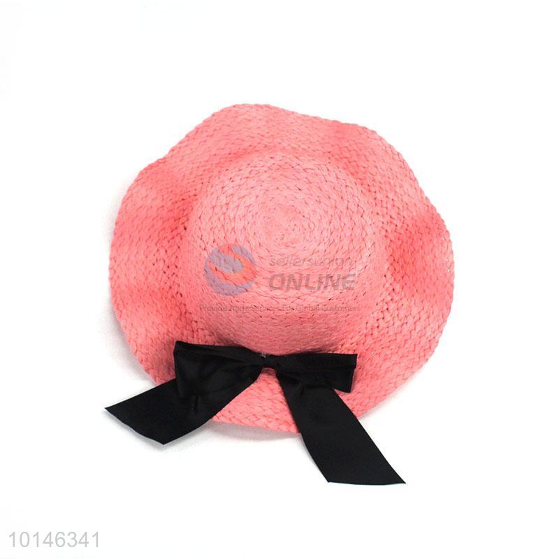 Wholesale Kids Straw Beach Cap With Black Bowknot