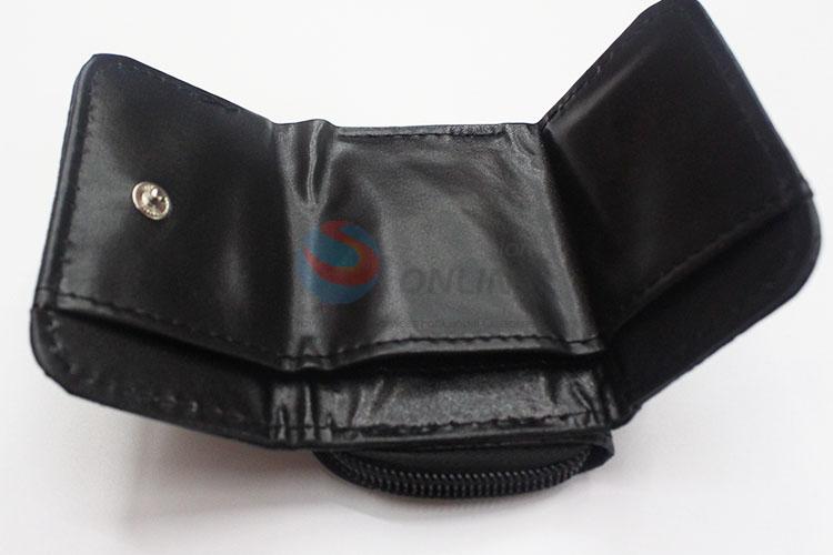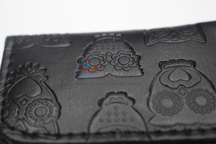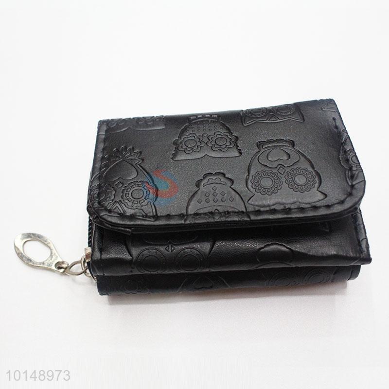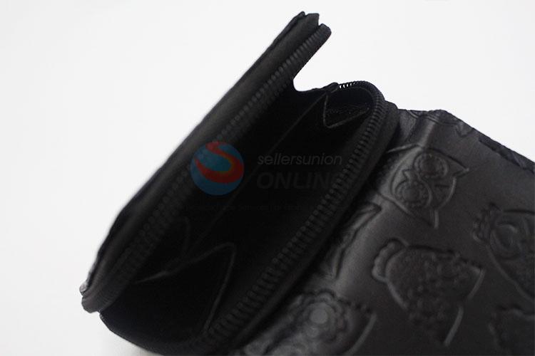 Black Color Cute Owl Printed Mini Wallet Three Fold PU Leather Purse Clutch Bag