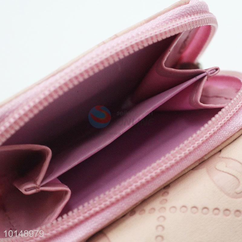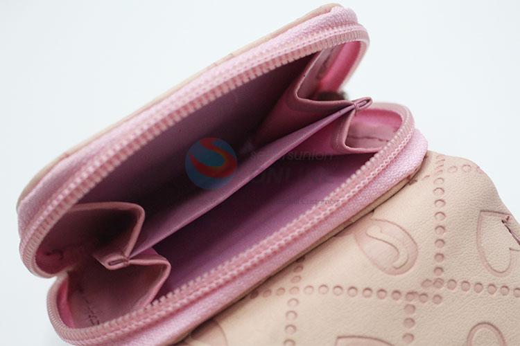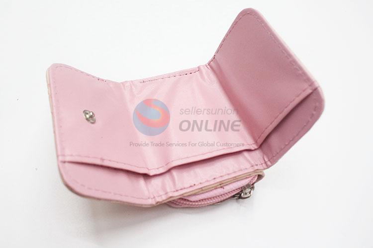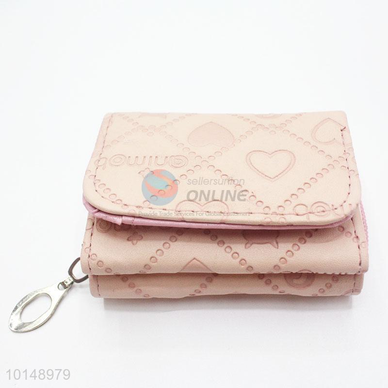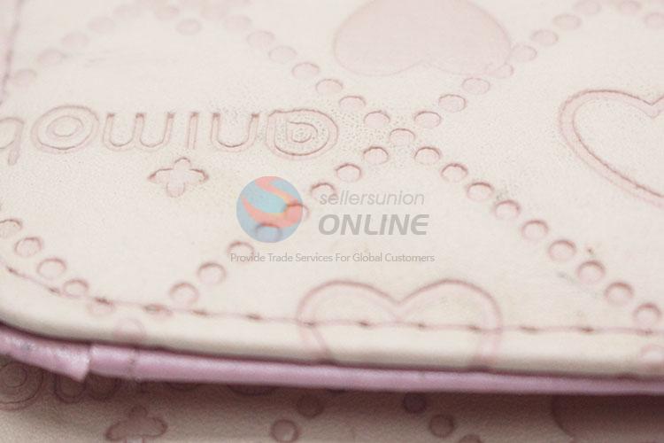 Pink Color Hearts Pattern Mini Wallet Ladies' PU Leather Clutch Bag Card Holders
