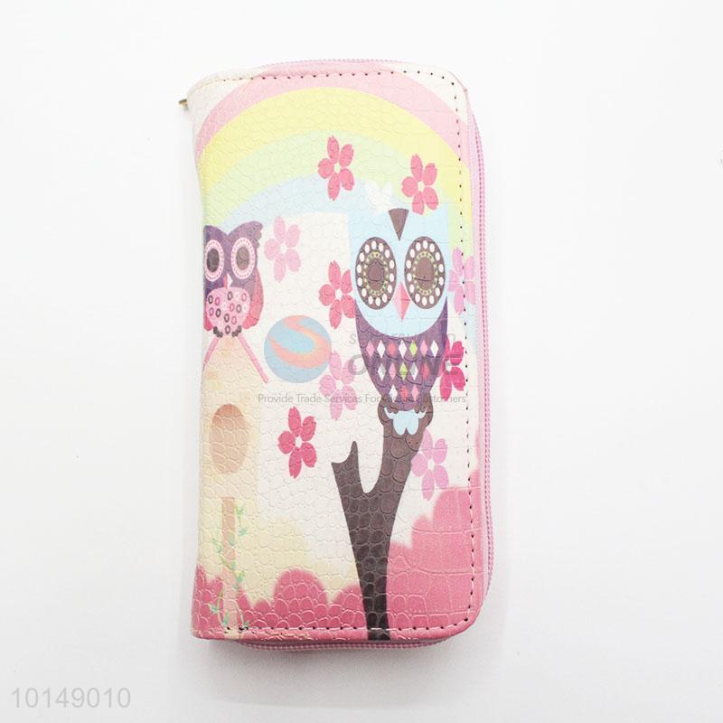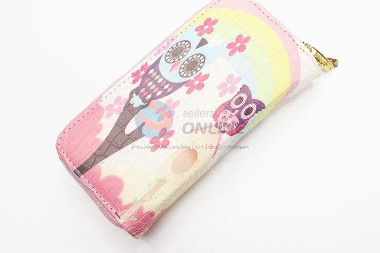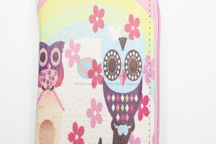 Cute Cartoon Owl Pattern Fashion Women Long Wallets Multi-purpose Pouch PU Leather Hasp Purse