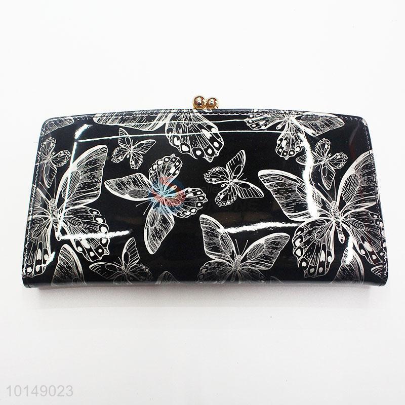 Simple Style Butterfly Printed PU Leather Wallets Women Hasp Long Purse