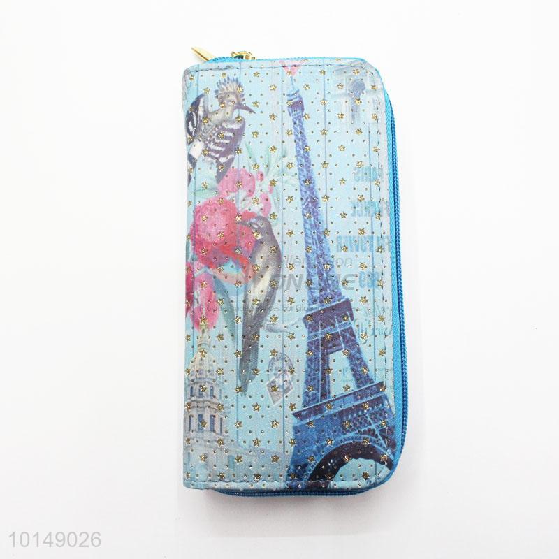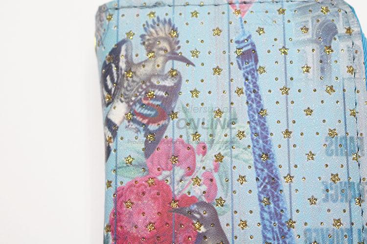 Glitter Star Eiffel Tower and Birds Printed Purse Multi-purpose Pouch PU Leather Wallet