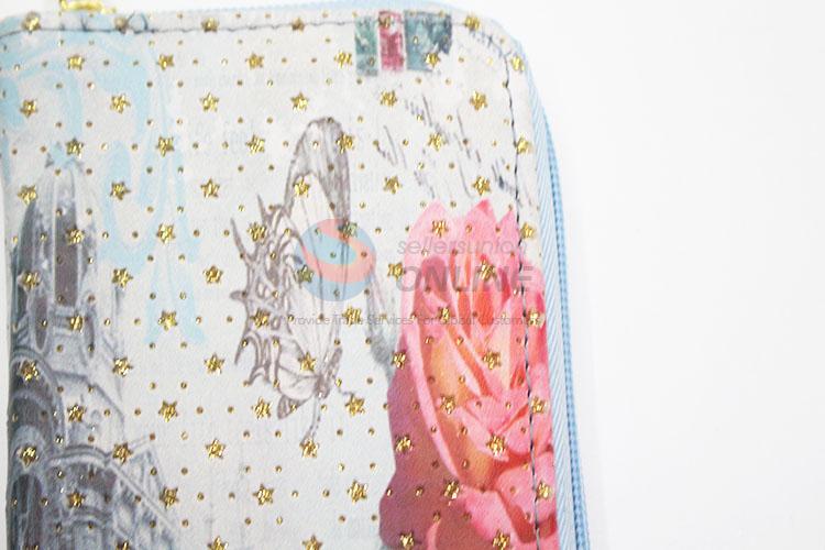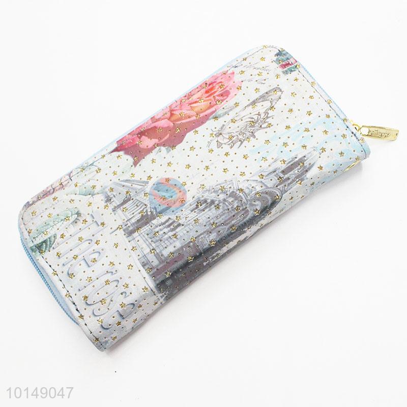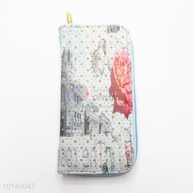 Glitter Star Rose Printed Zipper Long Wallet PU Leather Purse Ladies Clutch Card Holder