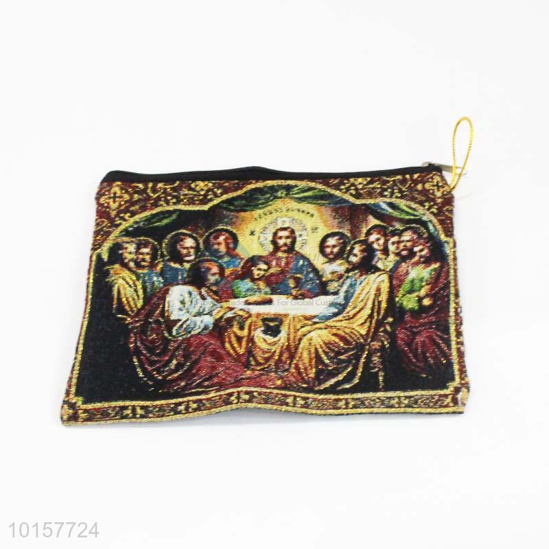 14*18cm Religious Themes The Last Supper Printed Grosgrain Coin Purse with Zipper