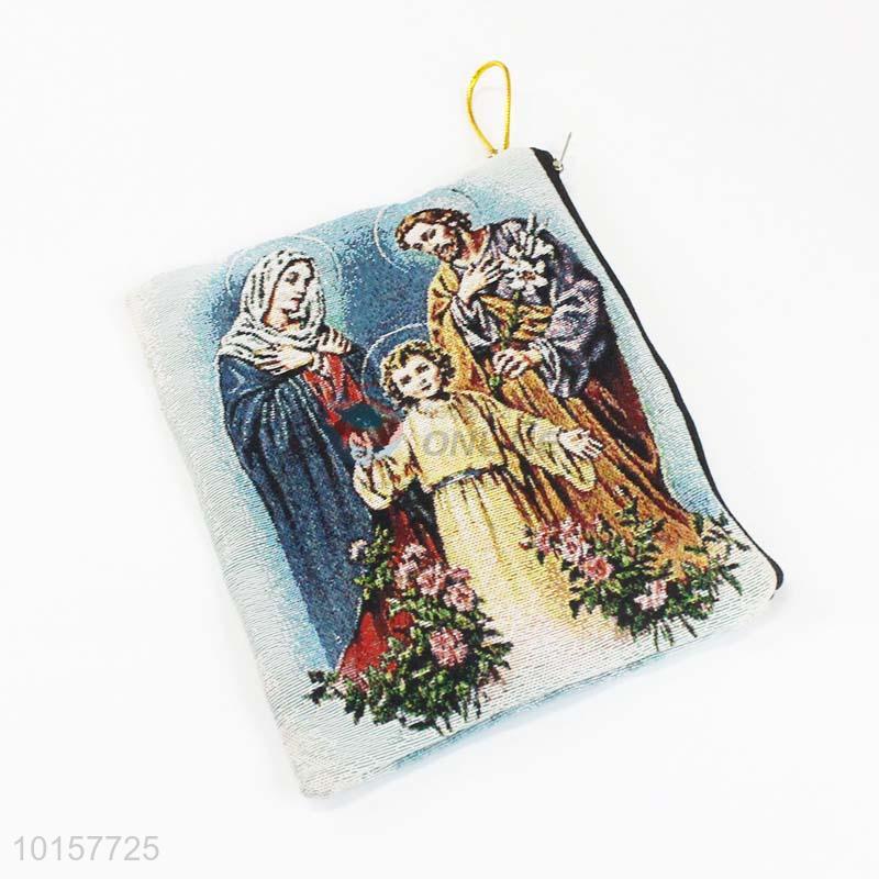 14*18cm Exquisite Religious Themes Grosgrain Coin Purse with Zipper