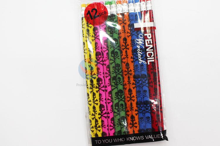 12 Pieces/Bag Wooden Cartoon Pattern Students Pencil with Eraser Children Cute Study Stationery