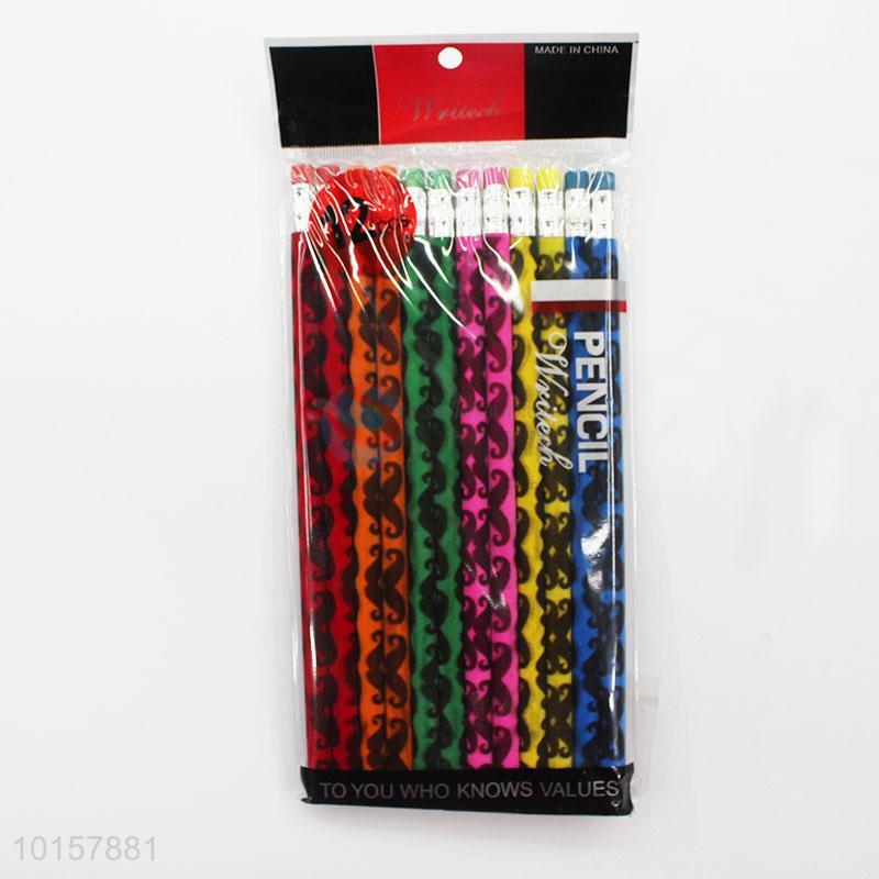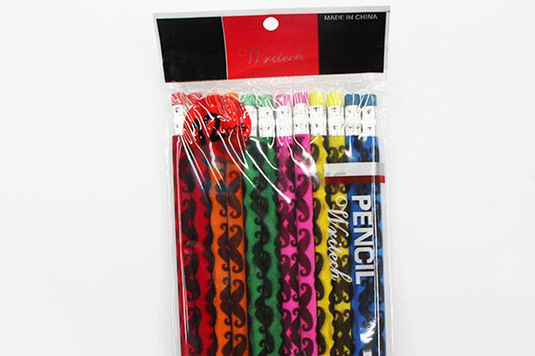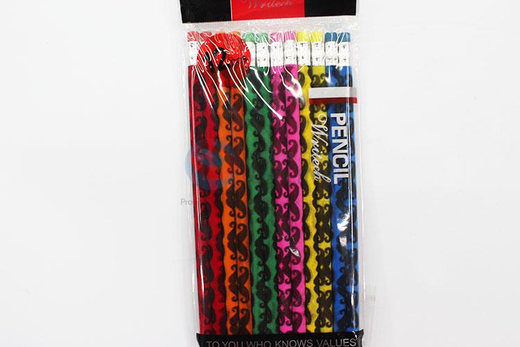 12 Pieces/Bag Simple Mustache Pattern Pencils with Eraser