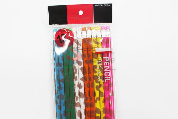 12 Pieces/Bag Colorful Pattern Pencil with Eraser for Kids Student School Office Supplies