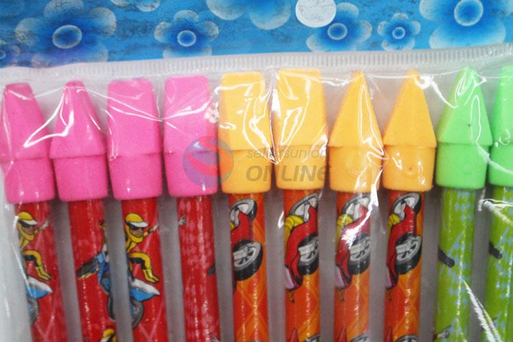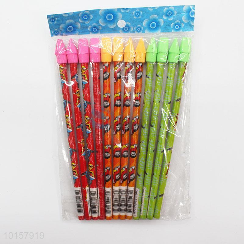 12 Pieces/Bag Cute Pattern Office School Supplies Wooden Pencil with Eraser
