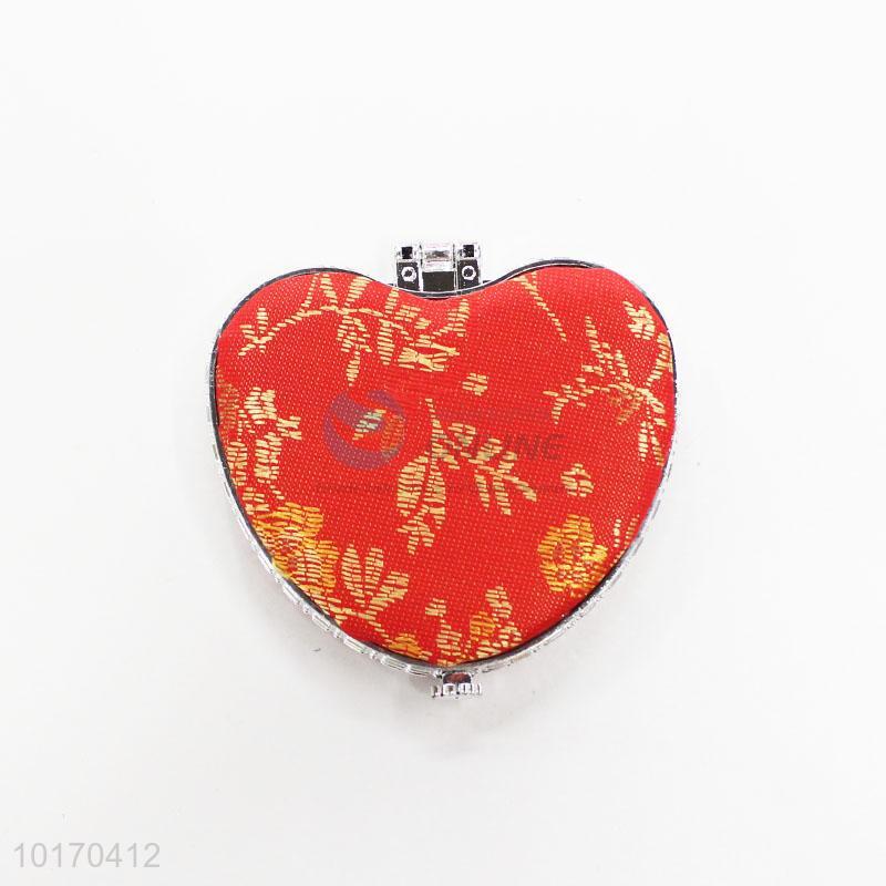 Decorative Red Mini Heart-shaped Silk Fabrics Cosmetic Mirror