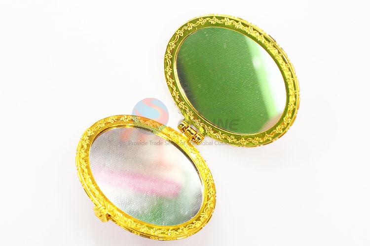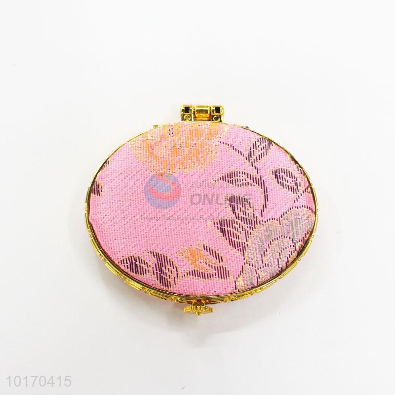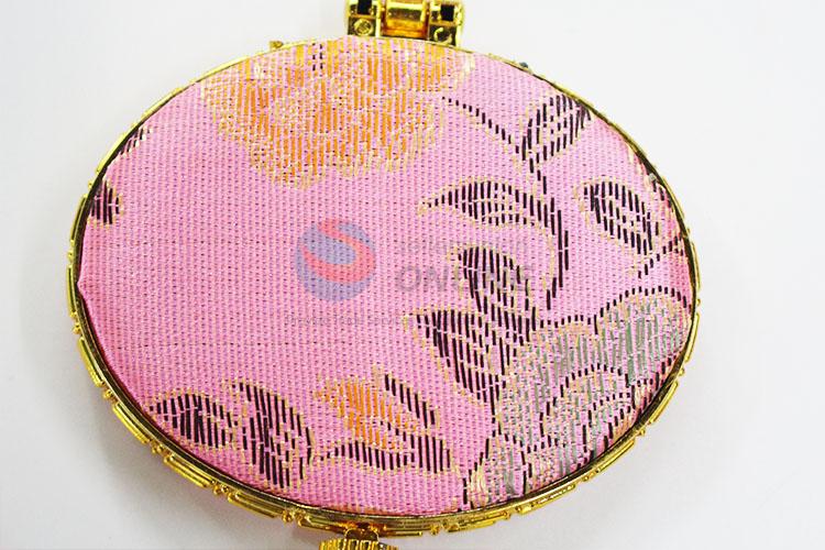 Flower Pattern Pink Mini Elliptical Silk Fabrics Cosmetic Mirror