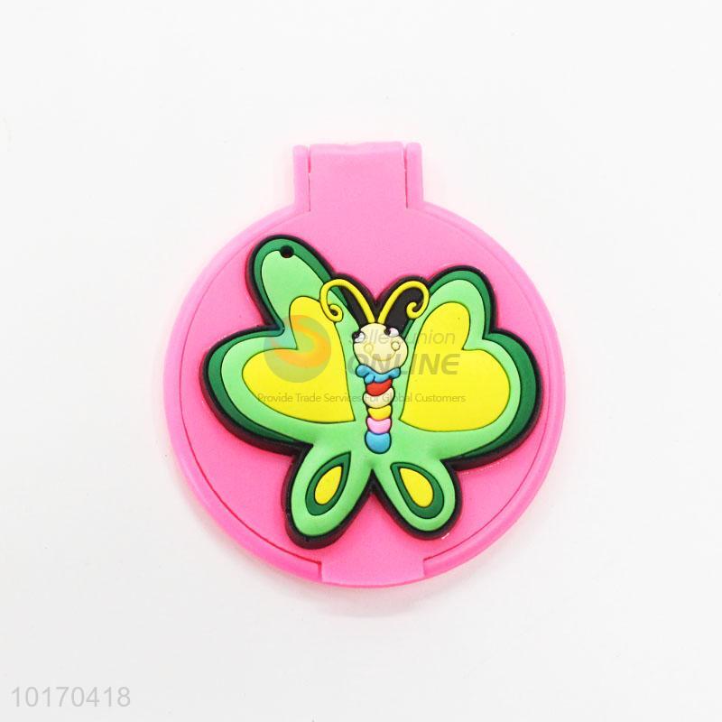 Green Butterfly Pattern Mini Round Plastic Single-sided Cosmetic Mirror