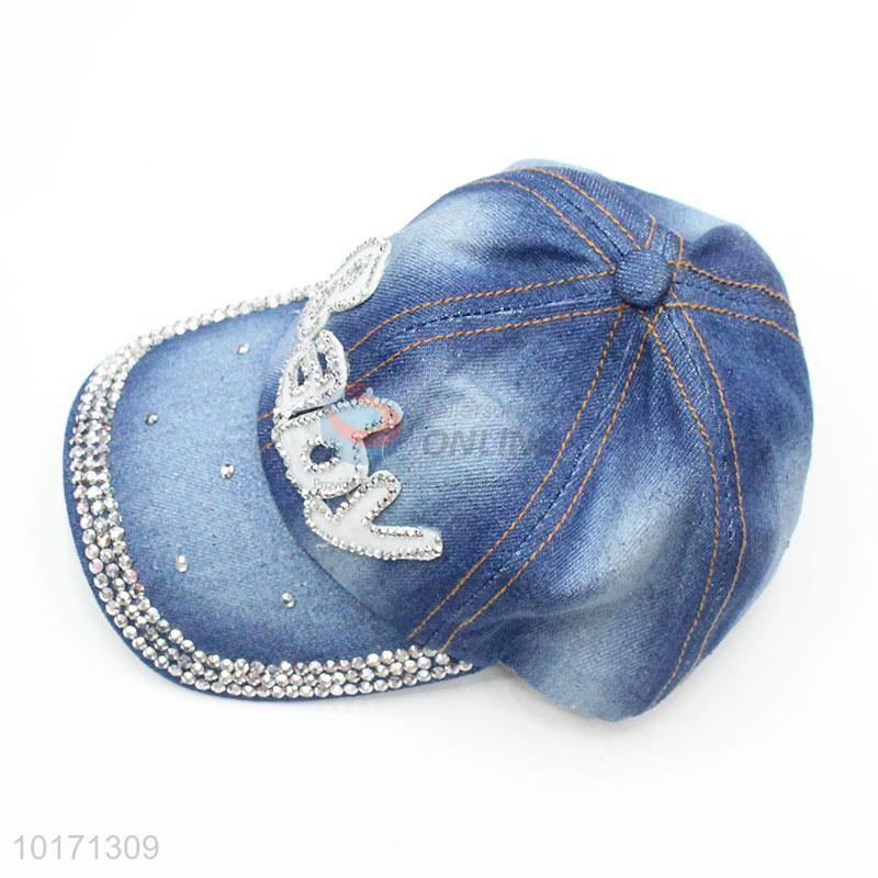 Letter Pattern Rhinestone Denim Hats Vintage Baseball Cap