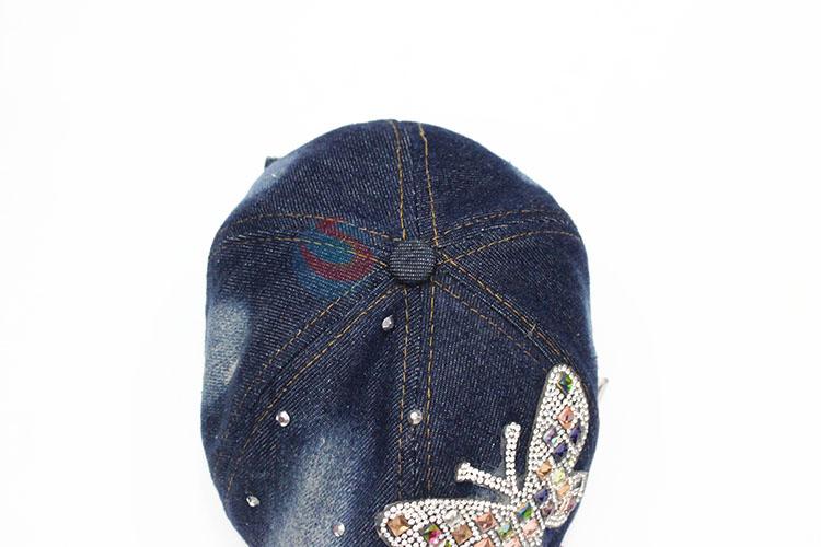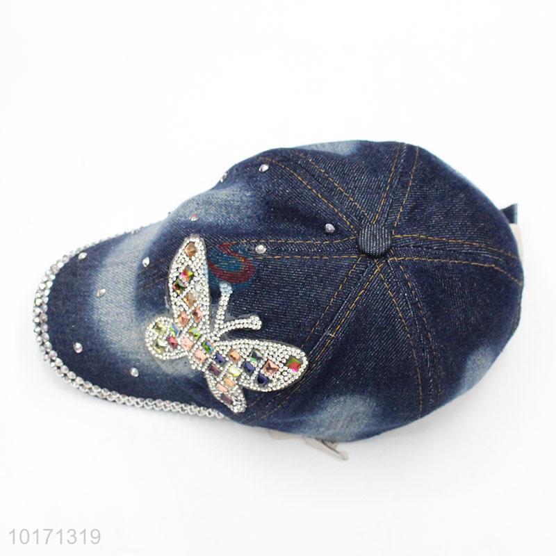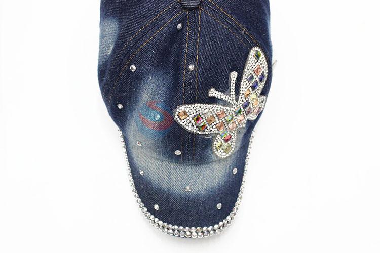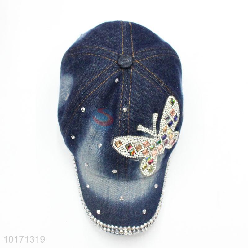Washed Baseball Cap Butterfly Rhinestone Pattern Denim Hats