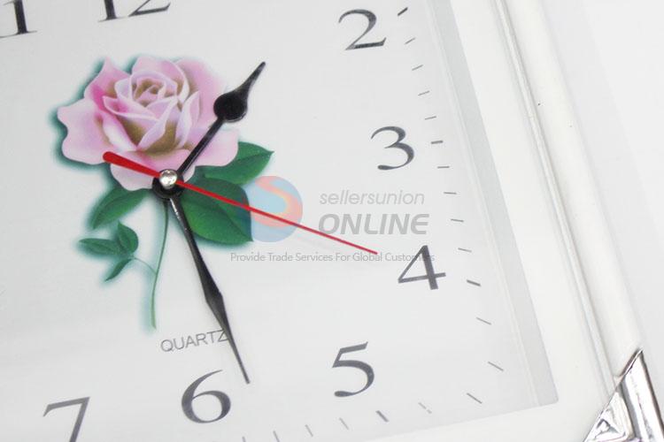 Home Decorative Rose Pattern Square Shaped Plastic Wall Clock